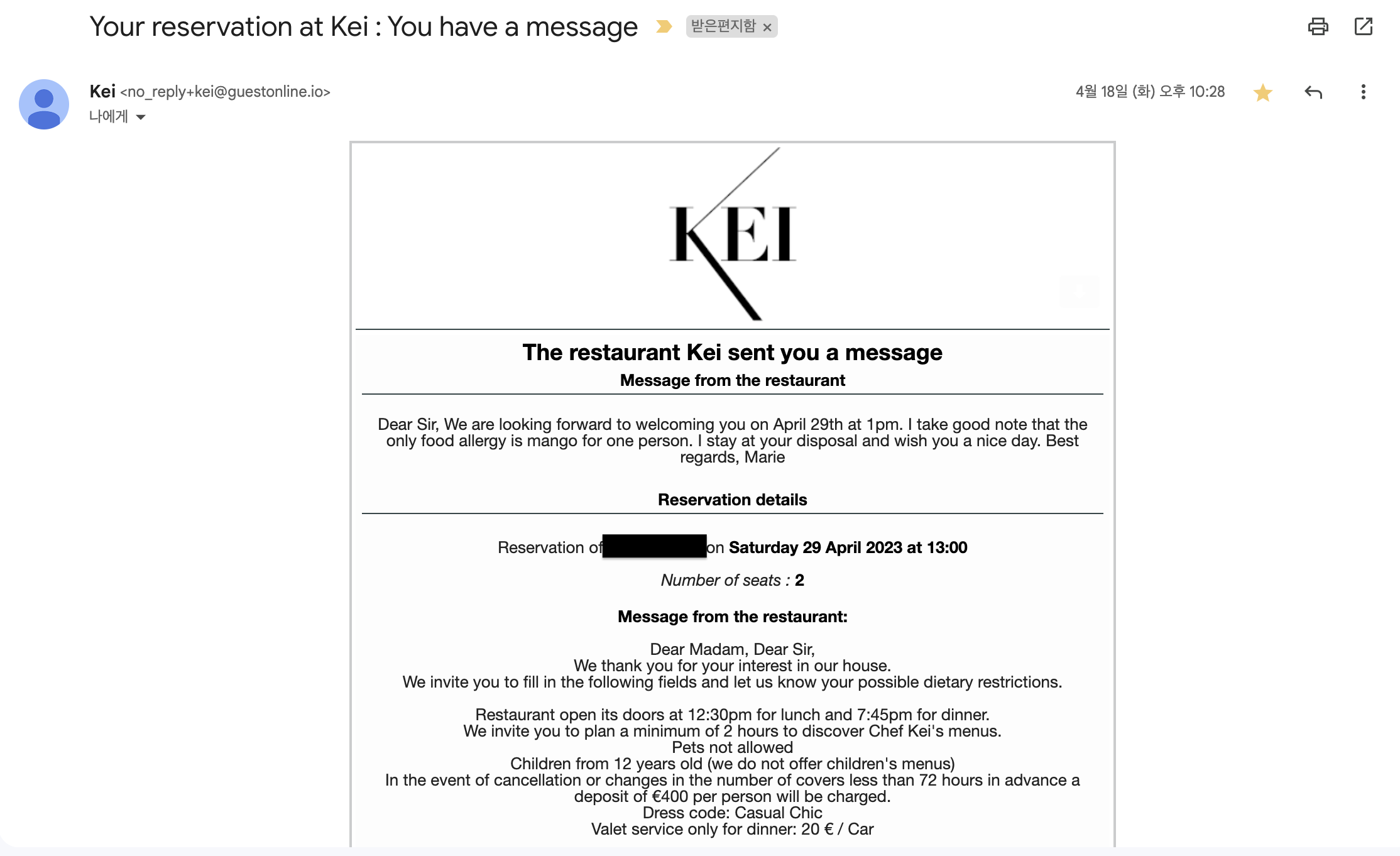 KEI는 미슐랭 3스타 레스토랑 치고는 합리적인 가격에